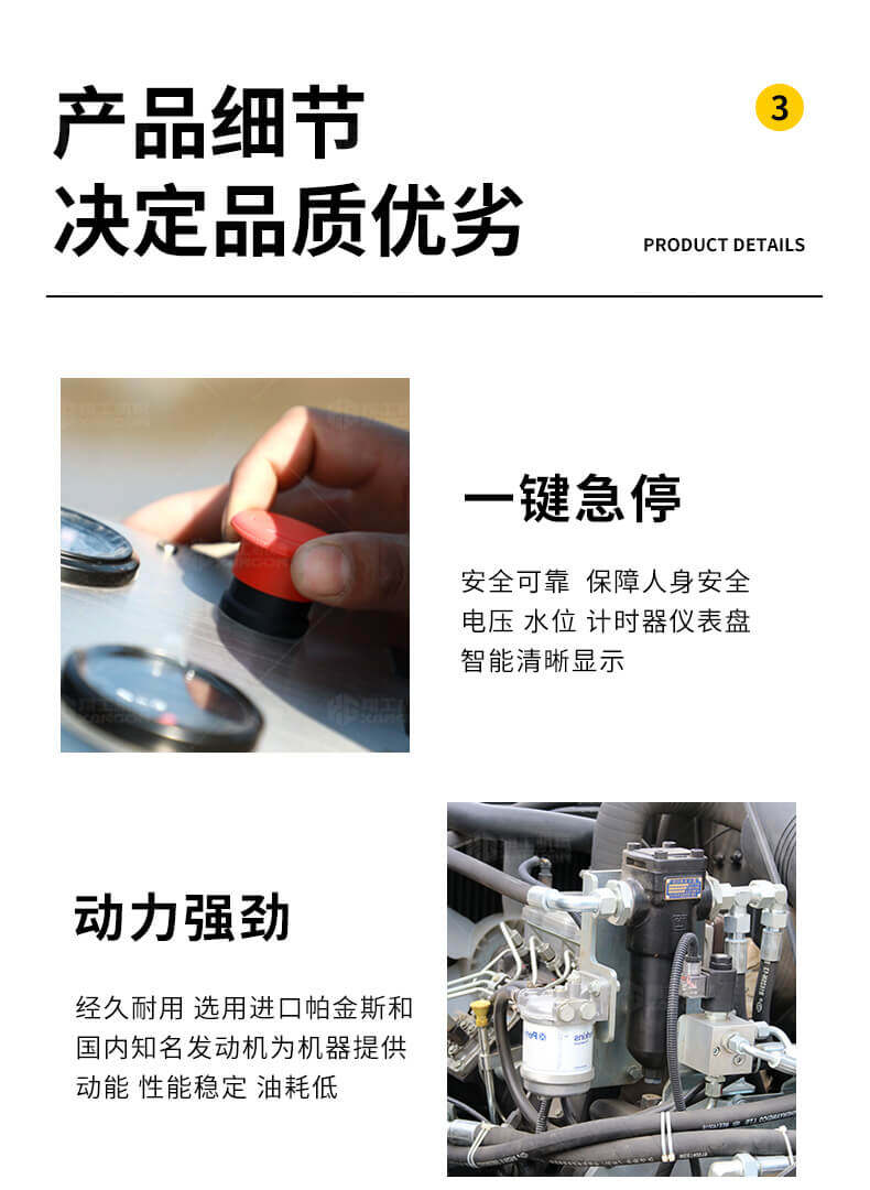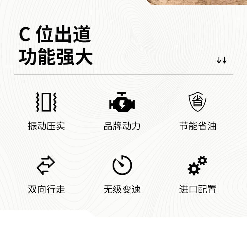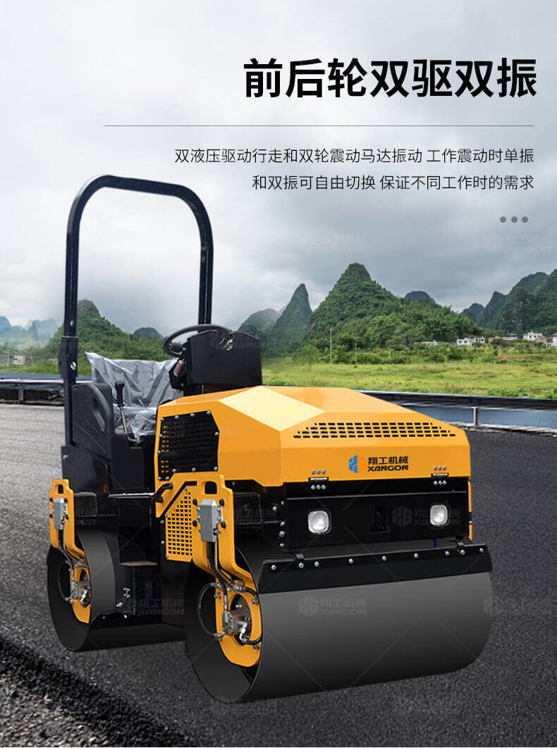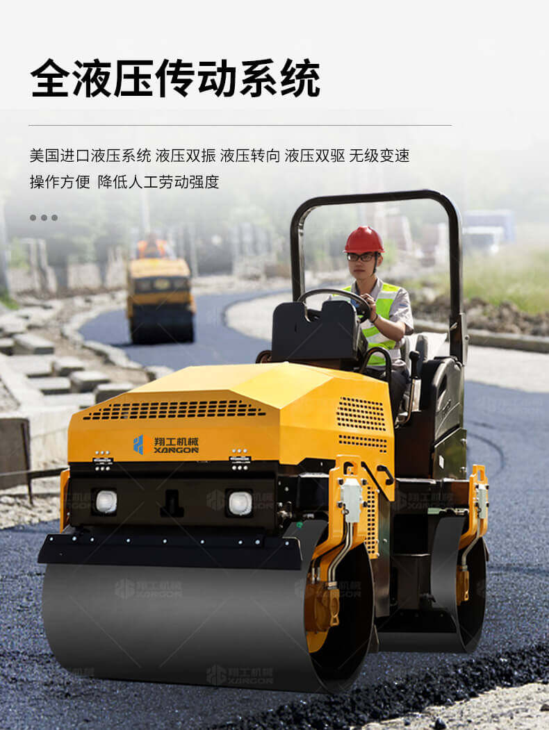 采用進(jìn)口液壓系統(tǒng),雙驅(qū)雙振,前后輪可單獨(dú)調(diào)節(jié)振動(dòng),亦可同時(shí)振動(dòng)。液壓轉(zhuǎn)向,液壓驅(qū)動(dòng),液壓行走,液壓振動(dòng)。進(jìn)口英國鉑金斯柴油機(jī)三缸水冷四沖程,動(dòng)力強(qiáng)勁,性能穩(wěn)定。超快速度一小時(shí)可達(dá)12千米,無極變速。壓土,碎石,壓瀝青,壓回填土效果超乎想象。