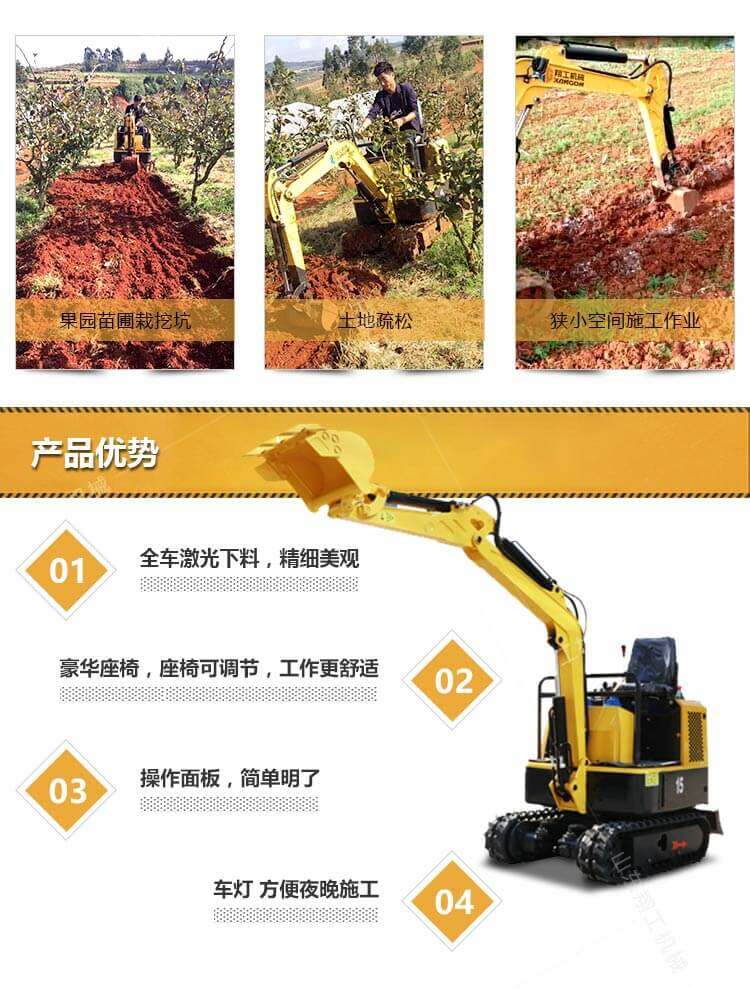 小型挖掘機(jī)質(zhì)量輕、保養(yǎng)維修方便,具有獨特優(yōu)勢。由于其小巧、靈活、多功能和效率高等特點,深受用戶的歡迎。