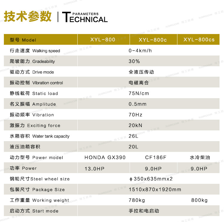 XYL-800C手扶全液壓壓路機(柴油)主要用于溝渠基礎(chǔ),道路,體育場地的壓實整平,也可用于壓實瀝青表面的作業(yè)。