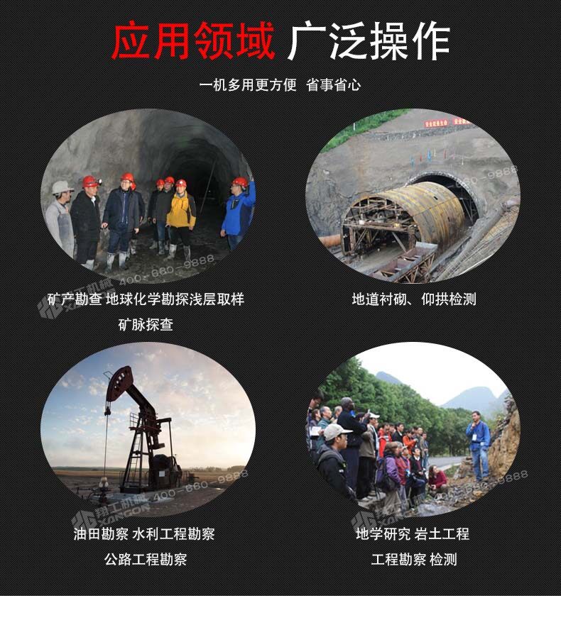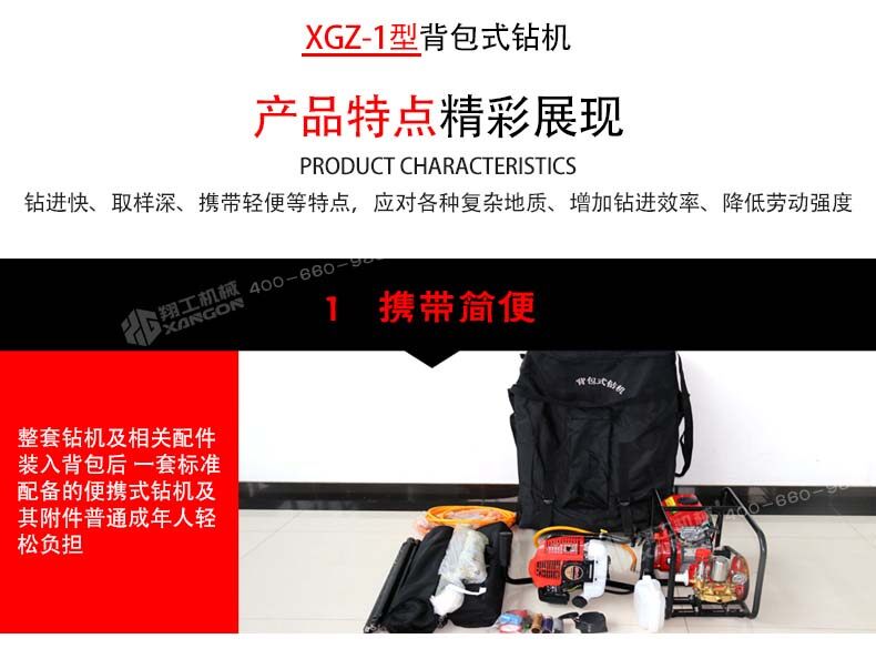 XGZ-1型背包式鉆機(jī)具有鉆進(jìn)快、取樣深、操作簡(jiǎn)單、攜帶輕便等特點(diǎn),可以應(yīng)對(duì)各種復(fù)雜地質(zhì)、增加鉆進(jìn)效率、降低勞動(dòng)強(qiáng)度,適用于高山、野外等交通不便的地形、勘探、石油勘測(cè)、礦物考察、建筑取樣、爆裂鉆孔等工作,可以卓效的替代中型巖芯鉆機(jī)的淺層巖芯取樣勘探工作。