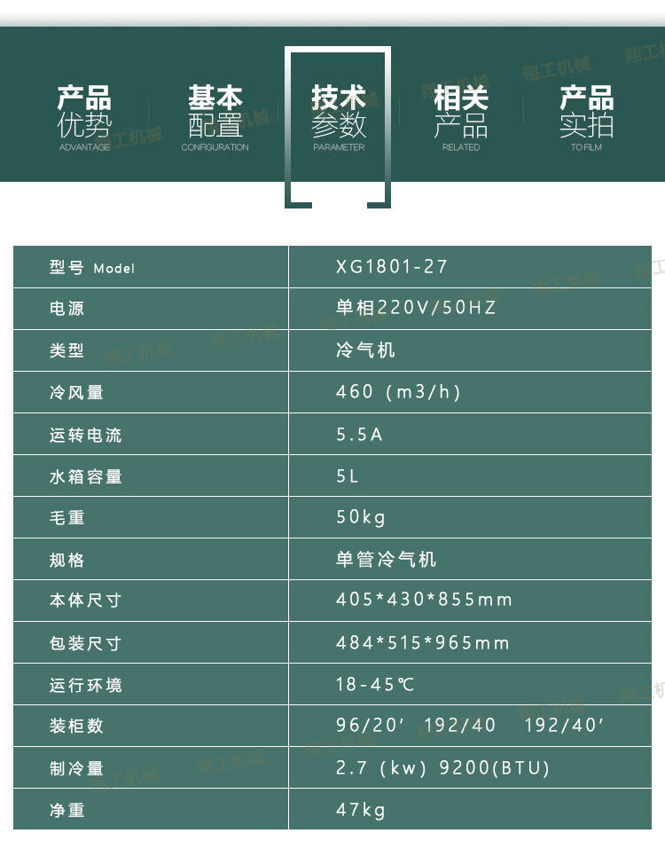 XG1801-27移動(dòng)式冷風(fēng)機(jī)