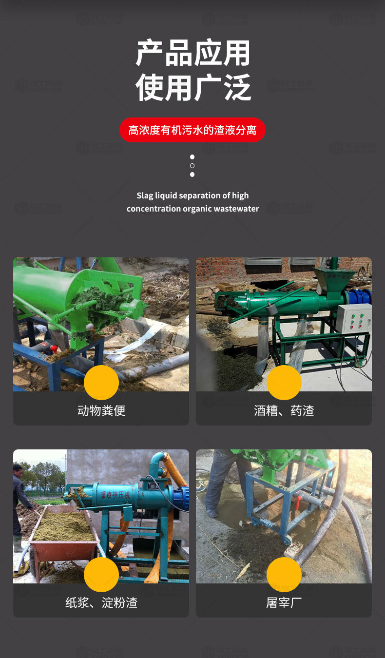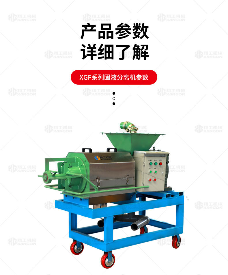 XGF系列固液分離機(jī)可廣泛做為雞、牛,馬及各類集約化養(yǎng)殖場對紙漿、動(dòng)物糞便、酒糟、藥渣、淀粉渣、醬渣、屠宰廠等高濃度有機(jī)污水的渣液分離。