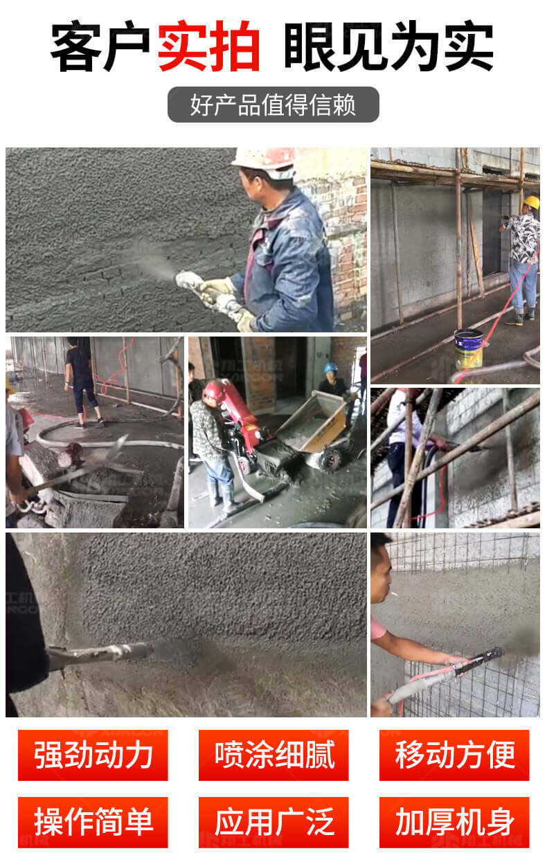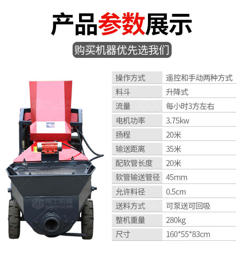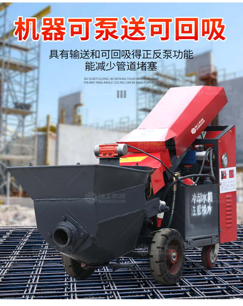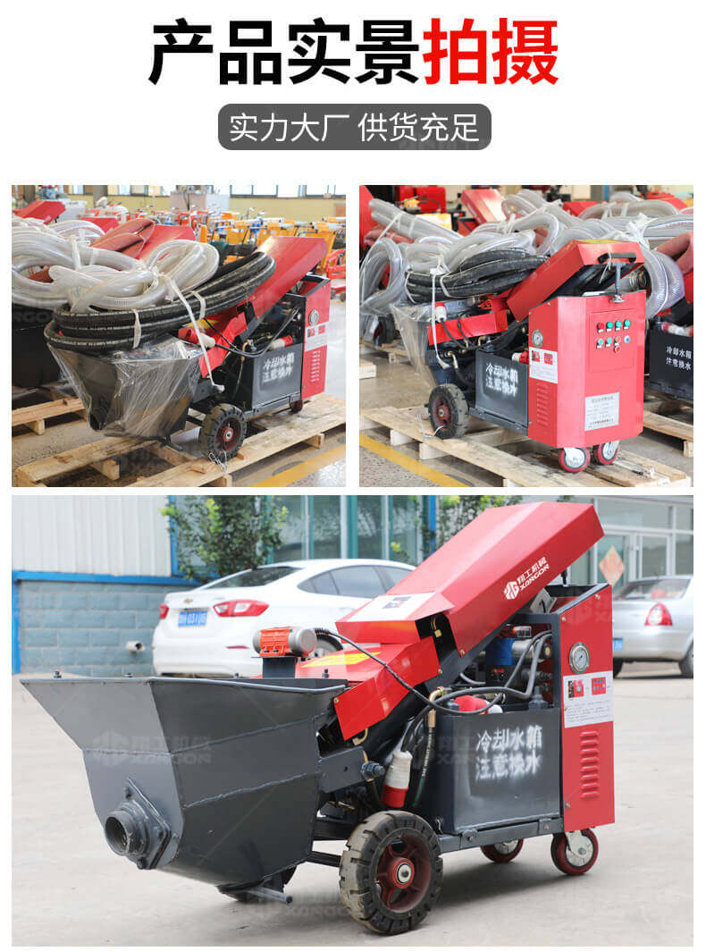 商品預(yù)拌砂漿,石膏砂漿,高標(biāo)號(hào)自拌砂漿,高強(qiáng)無收縮灌漿料,自流本機(jī)器采用成熟液壓推進(jìn)技術(shù)、泵車原理,革命性的采用斜體升降式布局,模塊化構(gòu)件,且電機(jī)功率小,揚(yáng)程高、體積小、重量輕等顯著優(yōu)點(diǎn),機(jī)器標(biāo)配全軟管,方便移動(dòng)易施工,改善了以往砂漿泵的體積笨重、磨損快、難維護(hù)的缺點(diǎn)。