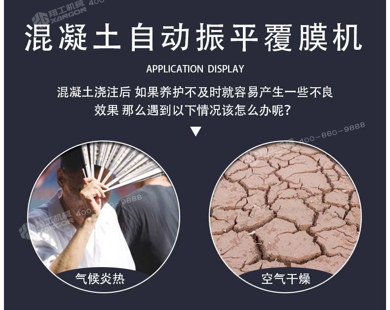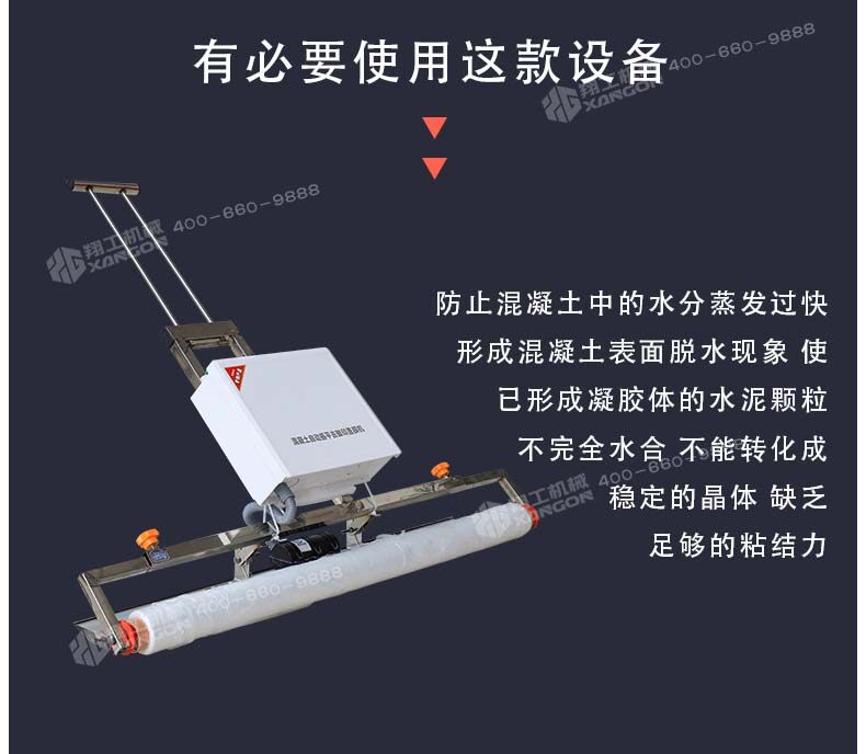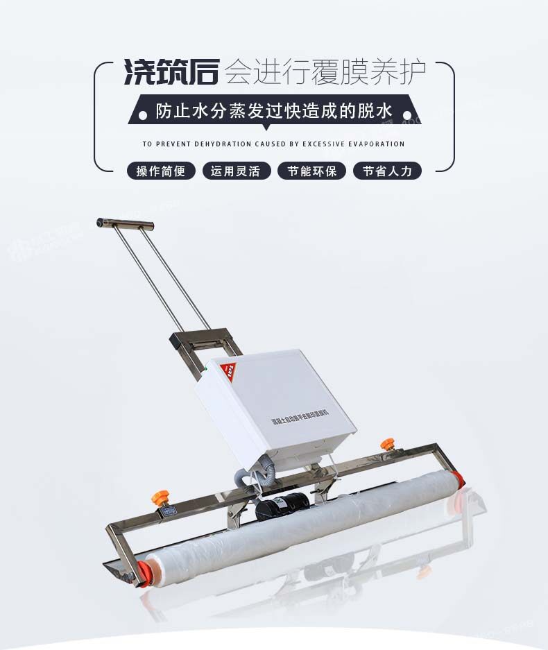 混凝土澆注后,如果養(yǎng)護不及時就容易產(chǎn)生一些不良效果,如氣候炎熱、空氣干燥等情況,我們就有必要使用這款設(shè)備,防止混凝土中的水分蒸發(fā)過快,形成混凝土表面脫水現(xiàn)象,使已形成凝膠體的水泥顆粒不完全水合,不能轉(zhuǎn)化成穩(wěn)定的晶體,缺乏足夠的粘結(jié)力。因此,混凝土表面會出現(xiàn)剝落或粉粒脫落。另外,當混凝土強度不夠時,過早蒸發(fā)水分會產(chǎn)生較大的收縮變形和干縮裂縫。因此,混凝土澆筑后的初期養(yǎng)護非常重要,終凝后應立即進行養(yǎng)護。