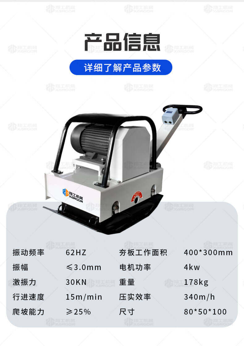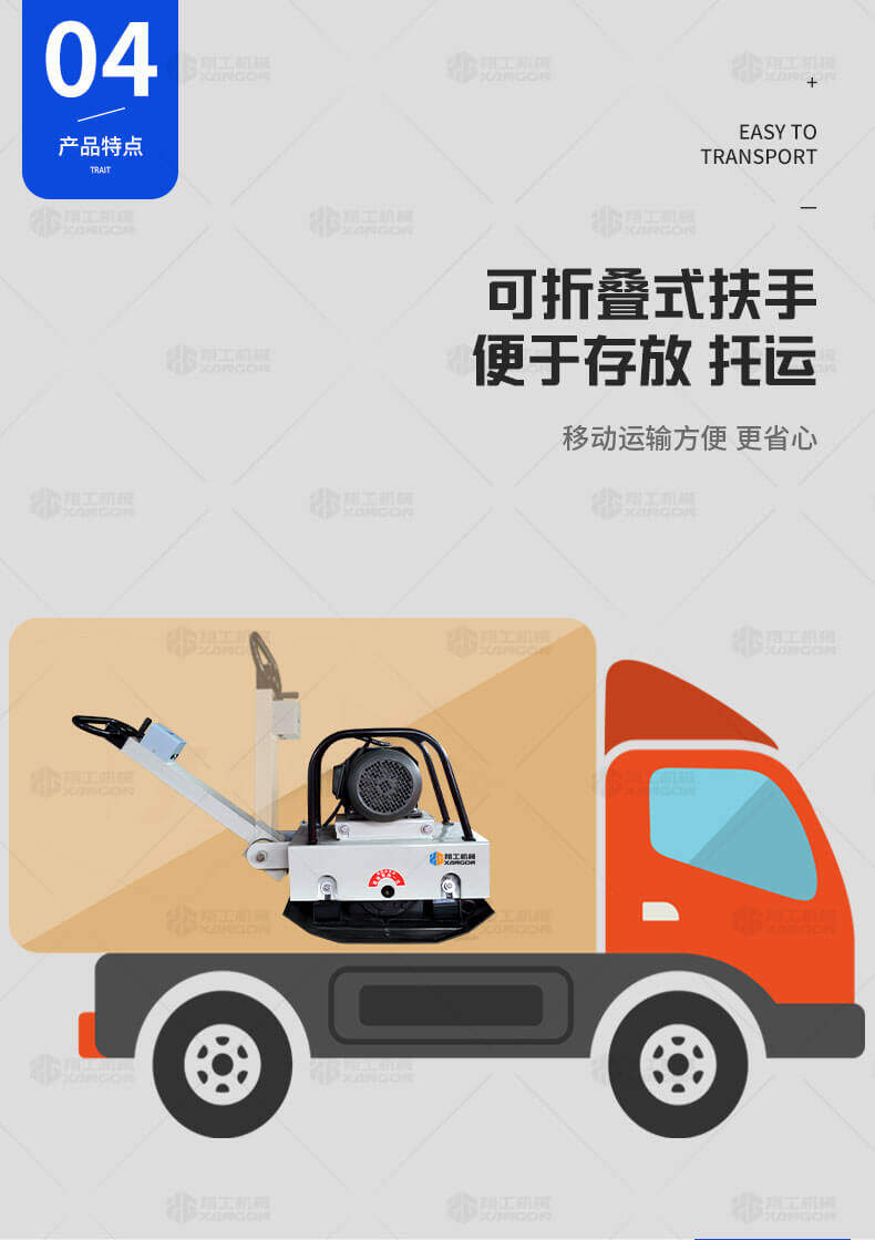 電動(dòng)平板夯是一種理想的混凝土基礎(chǔ)面層及一般混凝土構(gòu)件表面振實(shí)的工具,也是一種理想的夯實(shí)土壤、砂土、碎石的機(jī)械。