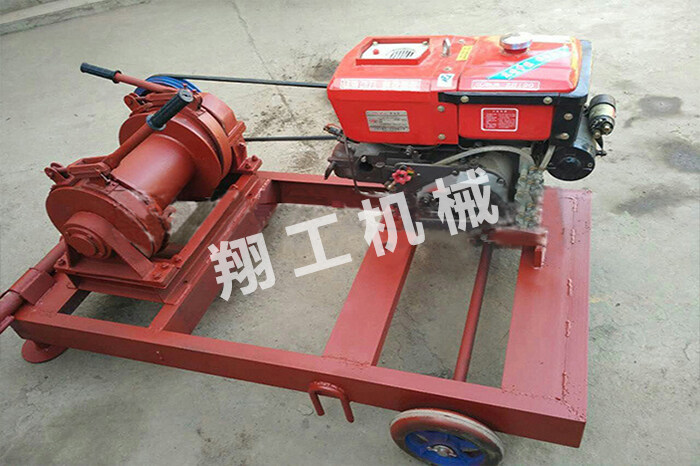 通過調(diào)節(jié)卷揚機將鏟頭升至適當高度,然后松開離合桿,由此鏟頭便可扎入土中。再次調(diào)節(jié)卷揚機將扎