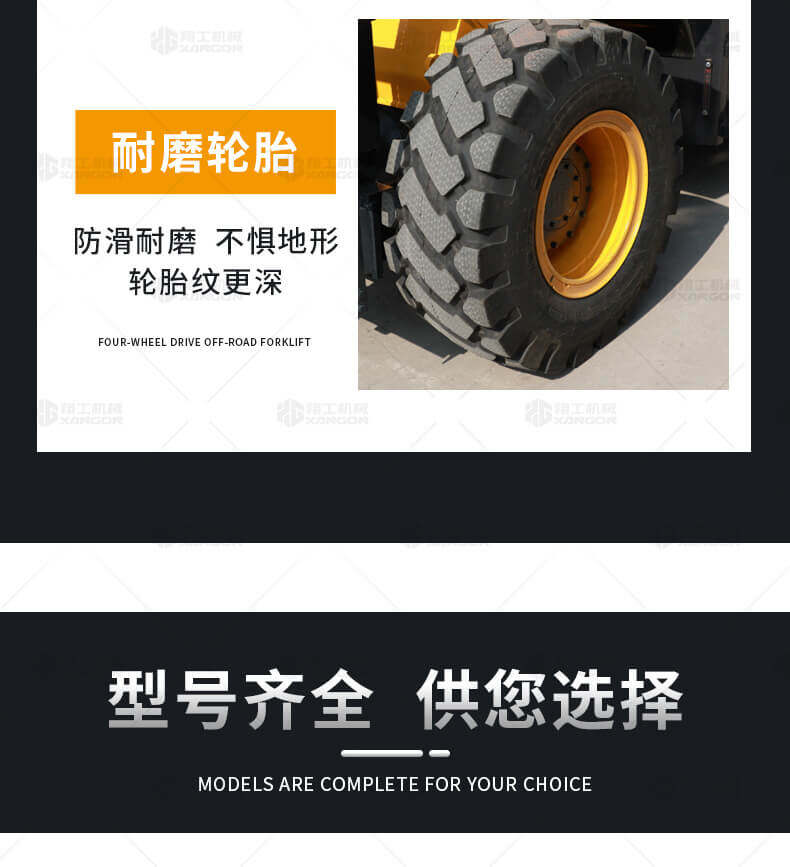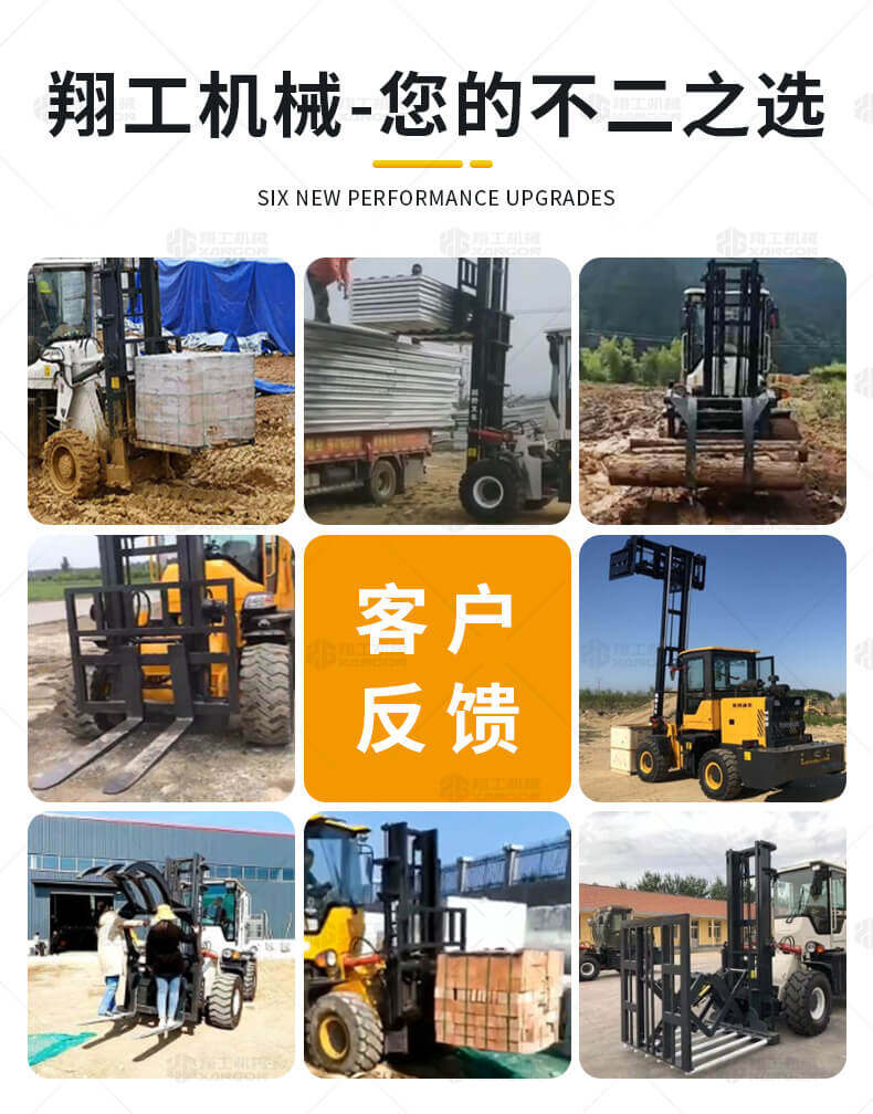 3.普通叉車只能在平整的路面上作業(yè),而越野叉車既可以在普通路面上作業(yè),還可以在山路泥路崎嶇道路作業(yè),輪胎抓地力強(qiáng),不打滑。