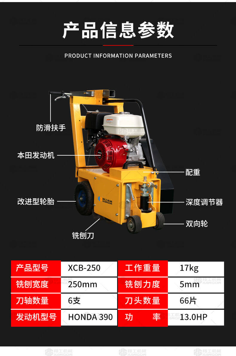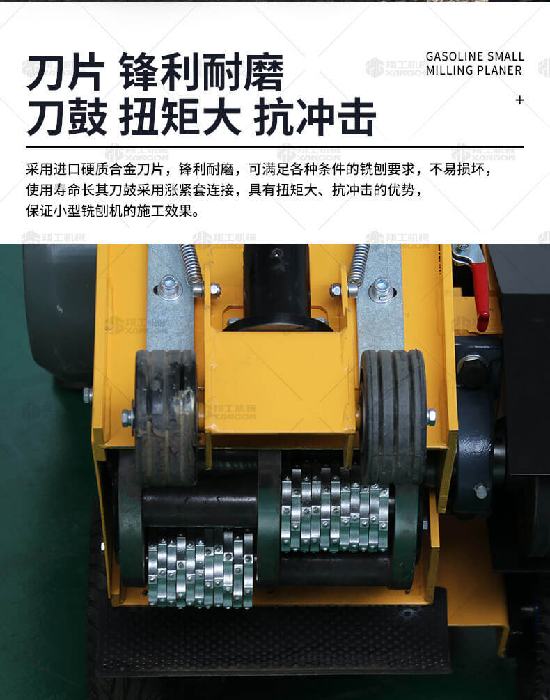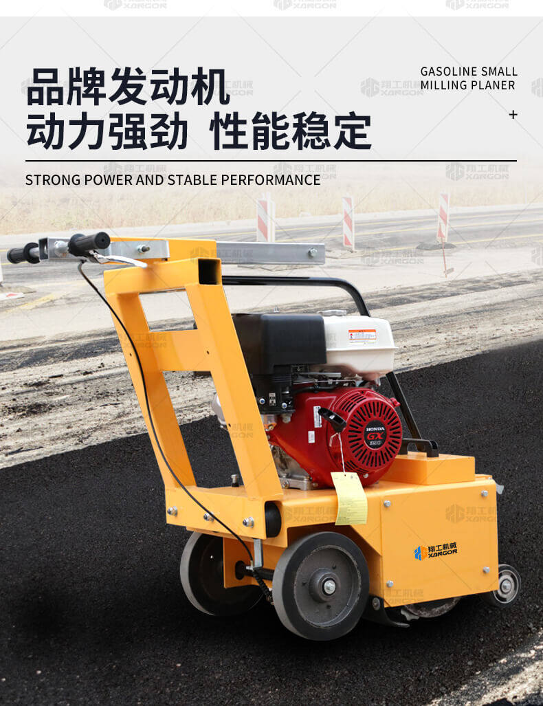 汽油小型銑刨機(jī)用于橋面鋪設(shè)瀝青或車間舊的混凝土地面重新攤鋪混凝土之前,清理水泥浮漿以及鏟平拉毛,也用于清理建筑施工中的堅(jiān)硬灰渣。