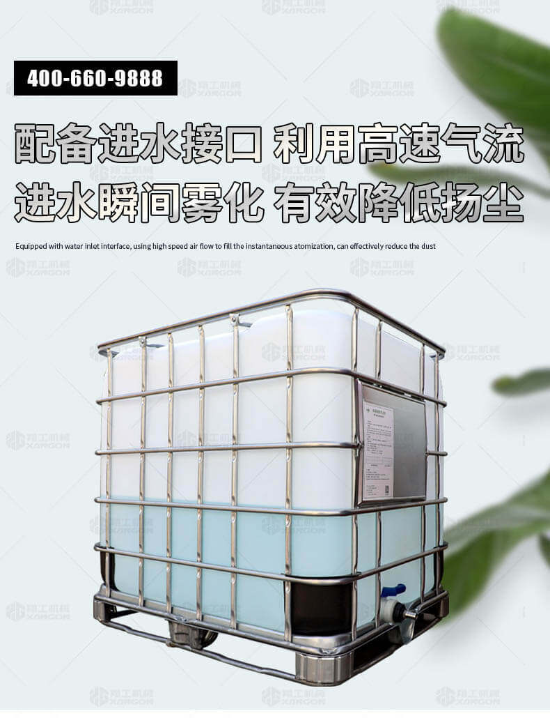 5、配備進(jìn)水接口,利用高速氣流將進(jìn)水瞬間霧化,可有效降低揚塵。