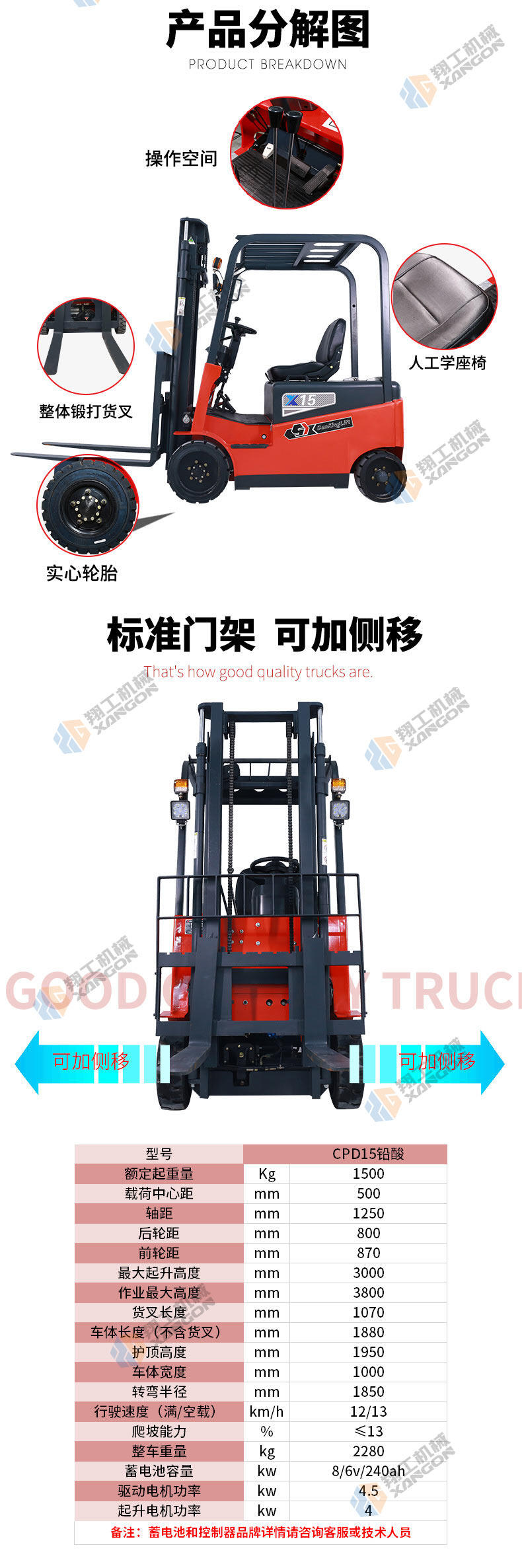 CPD1.5噸鉛酸四輪堆高車座駕式電動(dòng)叉車