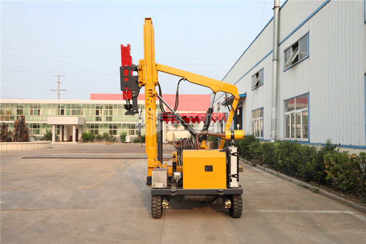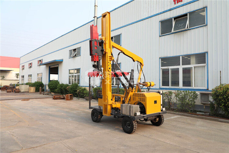小四輪打樁機是護欄打拔鉆一體機的同類產品,也是用于公路波形護欄的安裝。該機采用柴油動力,全液壓機械傳動,具有行駛輕便、打樁精度高、經久耐用、節(jié)能環(huán)保等特點,特別適用于公路護欄安裝、維修和搶修的野外工程施工。