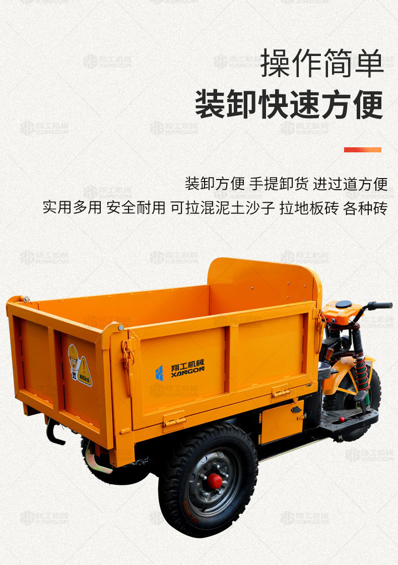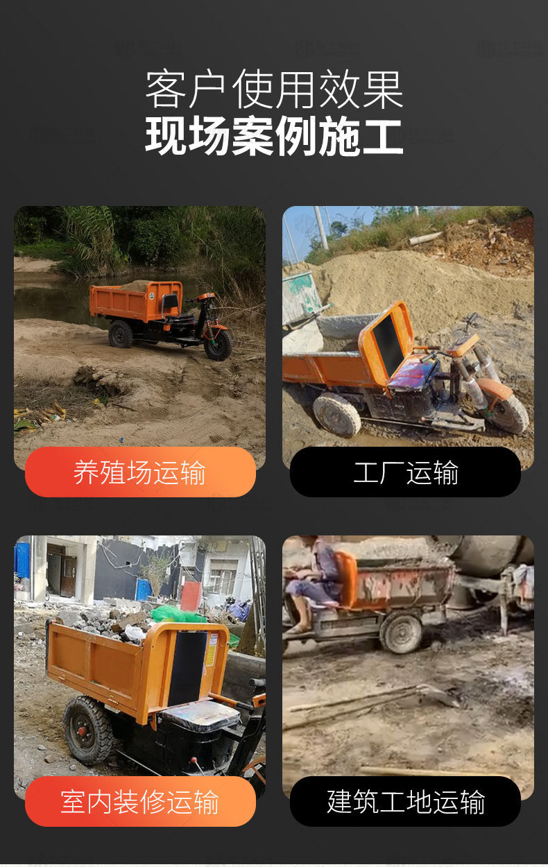 此款車適用于建筑工地、室內(nèi)裝修、養(yǎng)殖場、工廠等場所,運輸沙子、水泥、土方、混凝土、建筑垃圾生活垃圾、養(yǎng)殖場動物糞便、飼料等,體積小操作簡單靈活,可原地360度轉(zhuǎn)圈,可進入樓層、樓道、電梯、吊籃等各種狹小空間作業(yè),是您必不可少的裝卸助手。