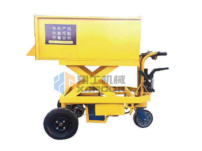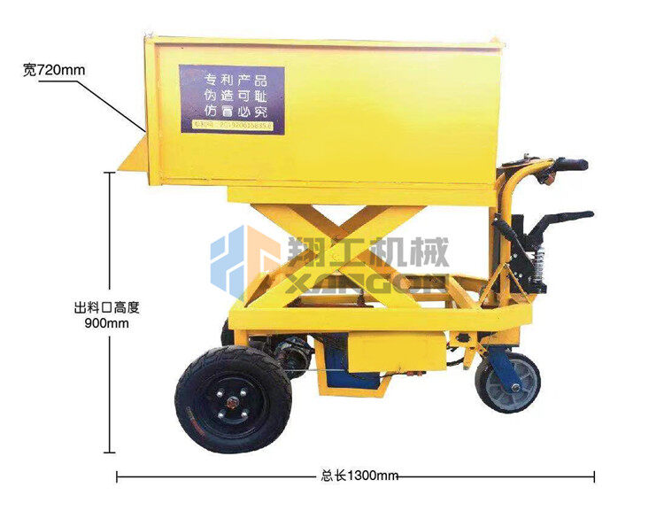 升降式混凝土小推車其主要特點(diǎn)是料斗升降式、尾后出料口和電動(dòng)行走。