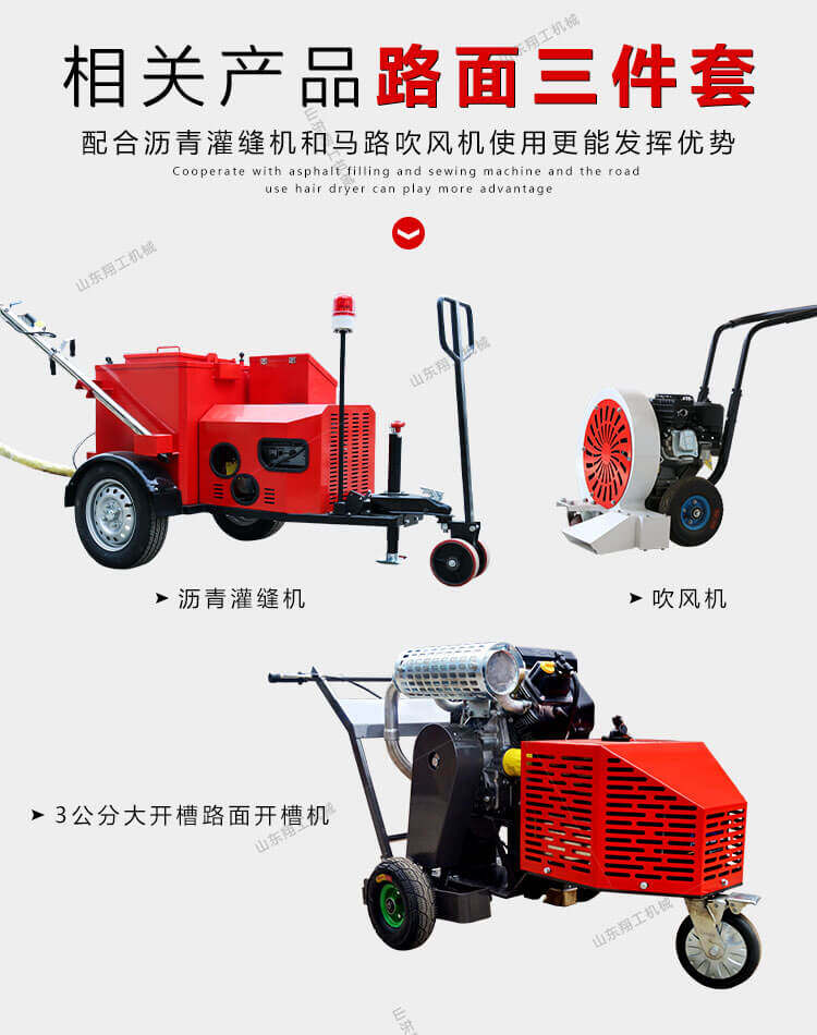 路面開(kāi)槽機(jī)適用于瀝青路面灌縫修補(bǔ)前的裂縫打?qū)挕T撛O(shè)備具有使用方便,擴(kuò)縫速度快,刀片使用壽命長(zhǎng),擴(kuò)縫寬度可調(diào)等優(yōu)點(diǎn)。