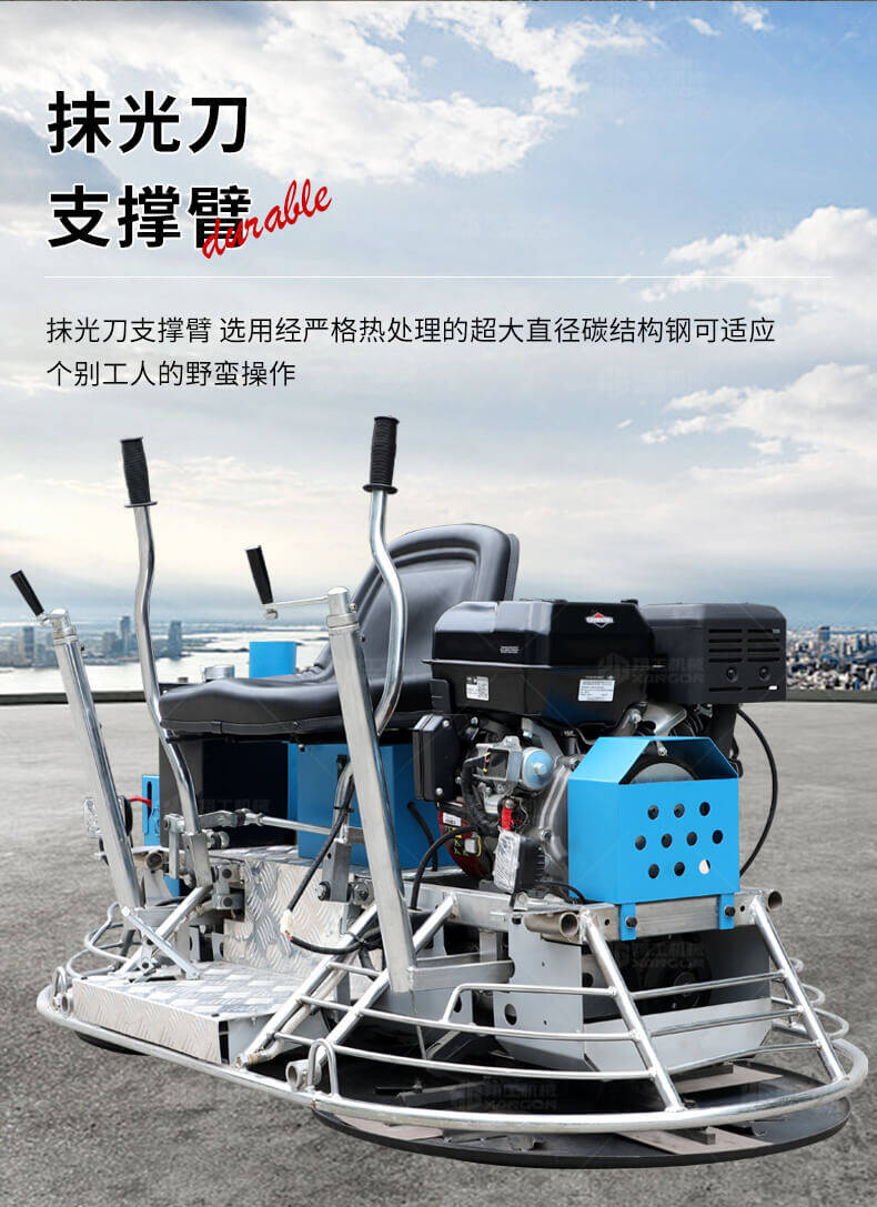 座駕式抹光機(jī)用于混凝土地面的提漿、壓實(shí)、抹平、抹光,座駕式操作大大降低了操作者勞動(dòng)強(qiáng)度,提高了作業(yè)效率。