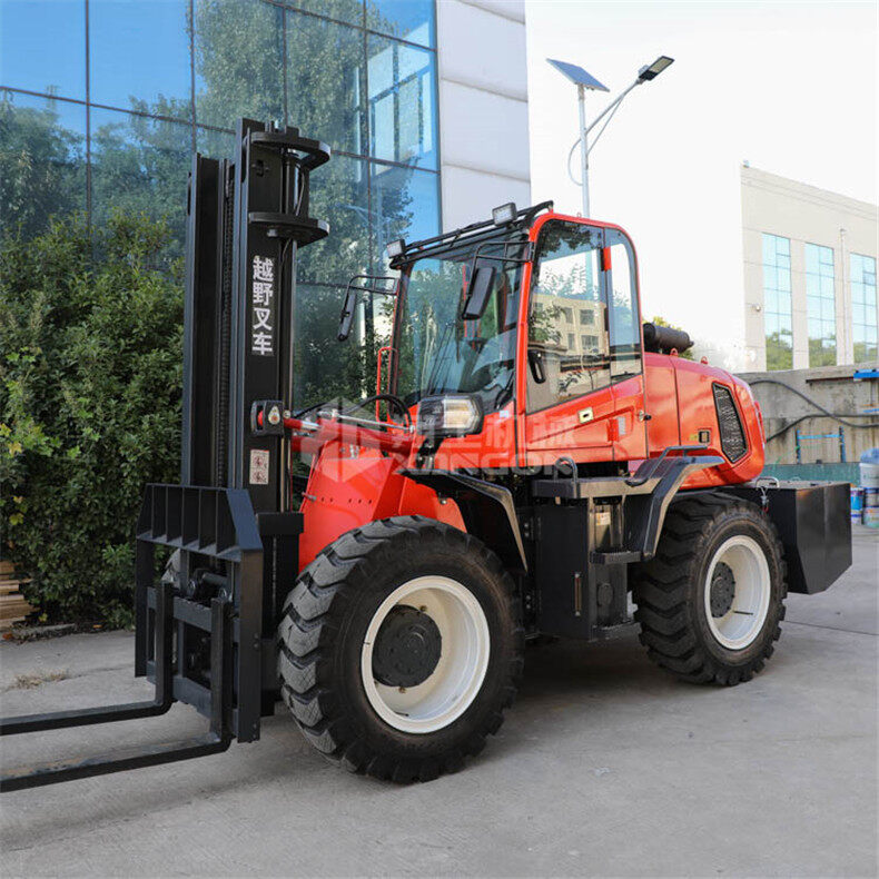 3.普通叉車只能在平整的路面上作業(yè),而越野叉車既可以在普通路面上作業(yè),還可以在山路泥路崎嶇道路作業(yè),輪胎抓地力強,不打滑。