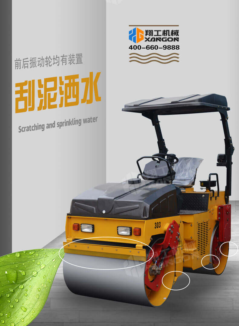 4,前后振動(dòng)輪均有刮泥和灑水裝置;