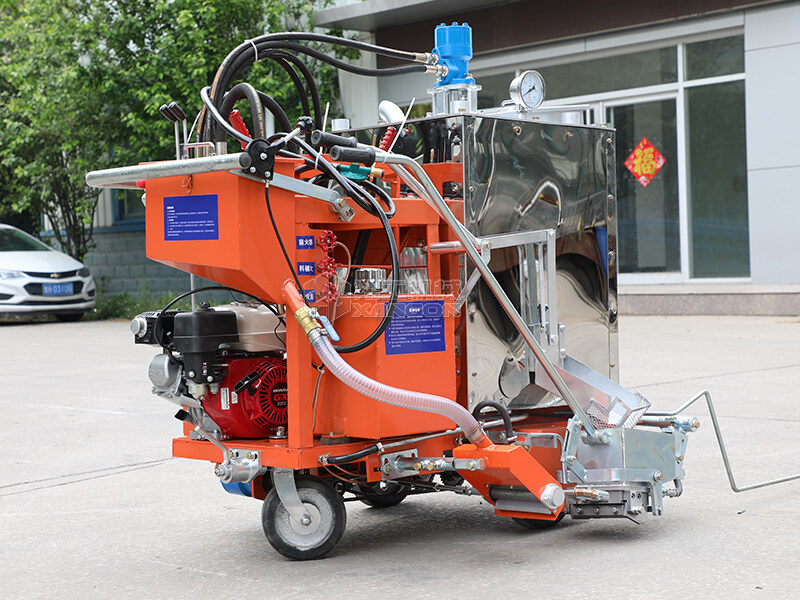液壓熱熔劃線(xiàn)機(jī)主要用來(lái)進(jìn)行路面或地面交通標(biāo)志劃線(xiàn),如斑馬線(xiàn)、人行道、車(chē)道等路面指示、標(biāo)志的交通施工的設(shè)備。在平整的地面上劃出不同約束、指引和警示等規(guī)則限制標(biāo)志的路面施工機(jī)械。