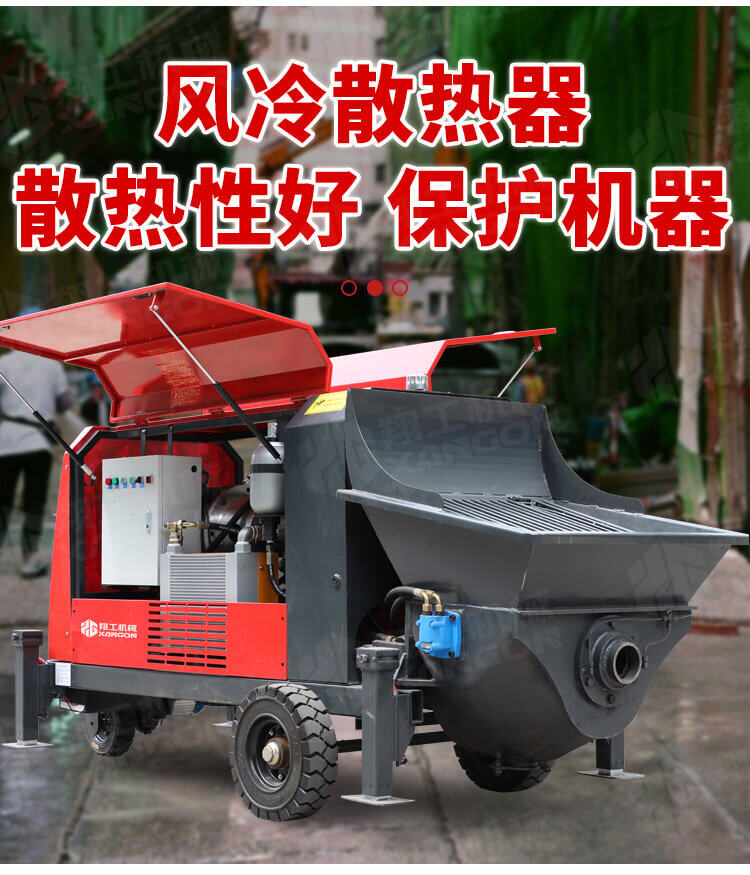 采用獨(dú)創(chuàng)的泵車尾輪驅(qū)動(dòng)系統(tǒng)輕松解決移動(dòng)時(shí)帶來的各種困難;采用雙排風(fēng)冷散熱系統(tǒng)散熱效果更好,液壓系統(tǒng)采用壓力更高,性能更穩(wěn)定的柱塞式自動(dòng)變量主油泵,采用先進(jìn)的三維立體壓模一體式自動(dòng)攪拌料斗可輸送機(jī)制砂,高標(biāo)號混凝土,有效緩解積料問題。