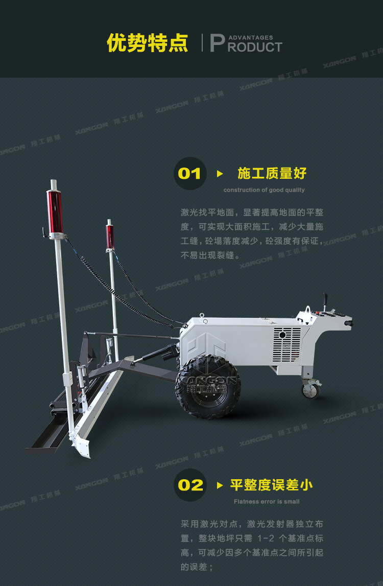 2,本產(chǎn)品的激光控制系統(tǒng)通過反饋調(diào)節(jié),實(shí)時(shí)監(jiān)控地坪的標(biāo)高,確保地坪的水平平整度和保證地坪的密實(shí)均勻;