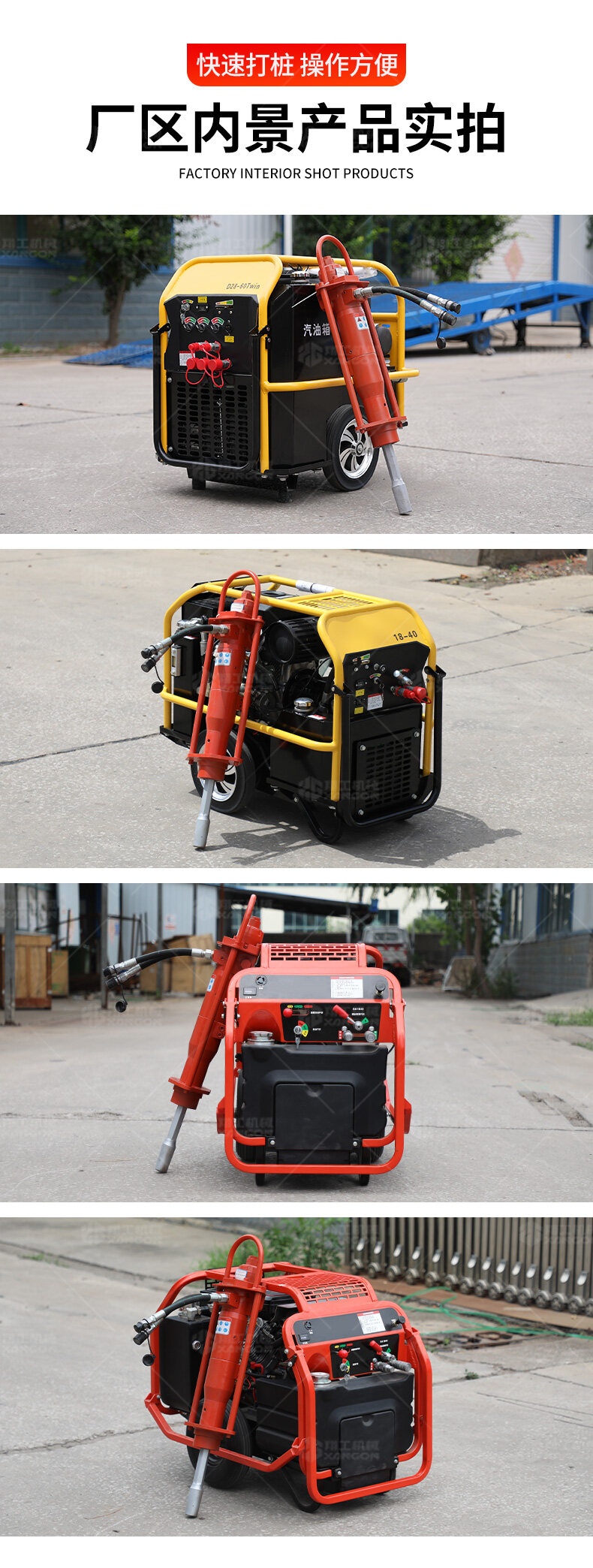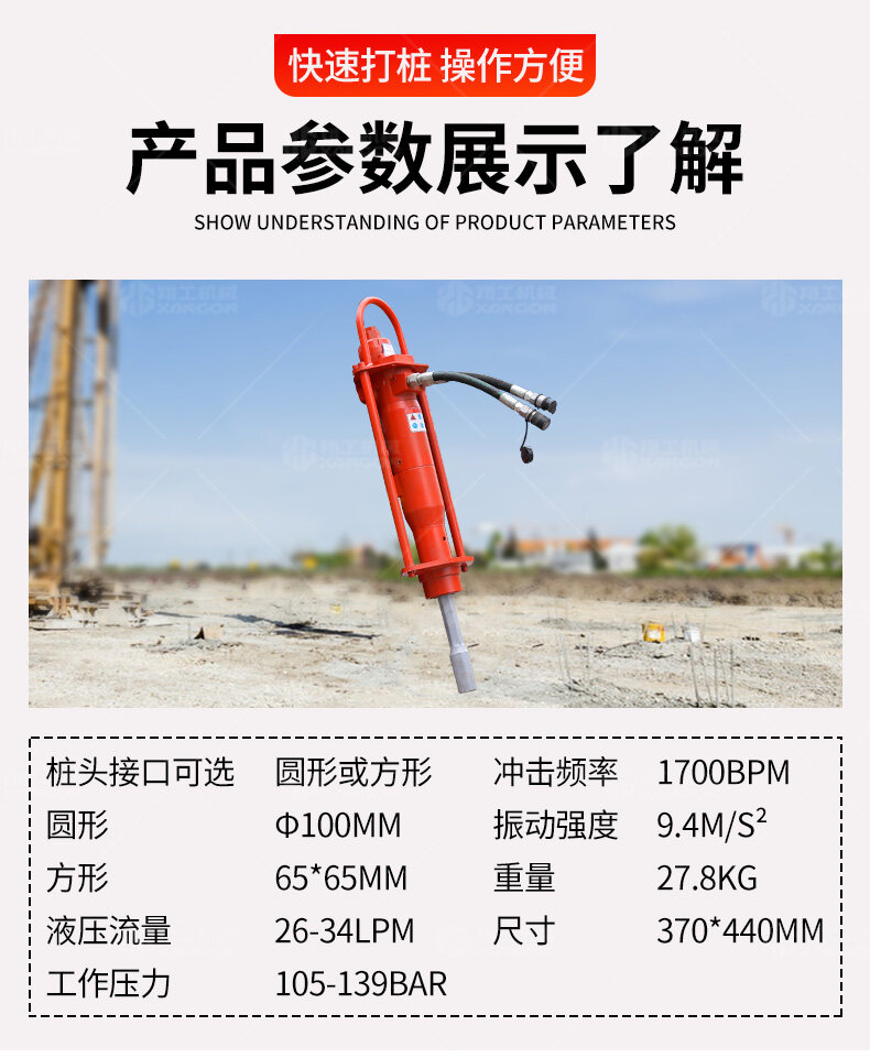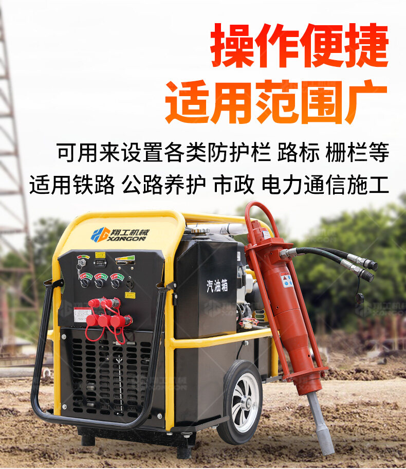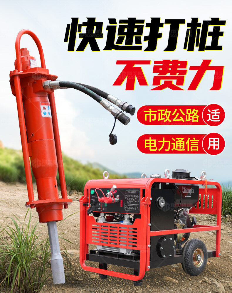 手持液壓打樁機(jī)+液壓動力站——高效靈活的打樁解決方案。采用液壓驅(qū)動,沖擊力強(qiáng)、振動小,適用于建筑地基、圍欄安裝、園林工程等場景。搭配液壓動力站,動力強(qiáng)勁,操作便捷,可長時間連續(xù)作業(yè)。體積小、重量輕,適合狹小空間施工,是工程打樁的理想工具。