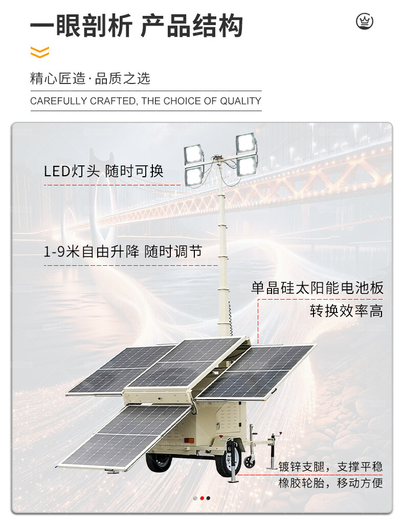 太陽能燈車采用高效光伏板與鋰電池組合,白天蓄電,夜間自動照明,節(jié)能環(huán)保。配備高亮度LED燈,照射范圍廣,適用于道路施工、應(yīng)急搶險、夜間作業(yè)等場景。移動靈活,防水防塵,無需外接電源,續(xù)航持久。結(jié)構(gòu)堅固,操作簡便,是戶外臨時照明的理想選擇,兼顧經(jīng)濟(jì)性與實(shí)用性。